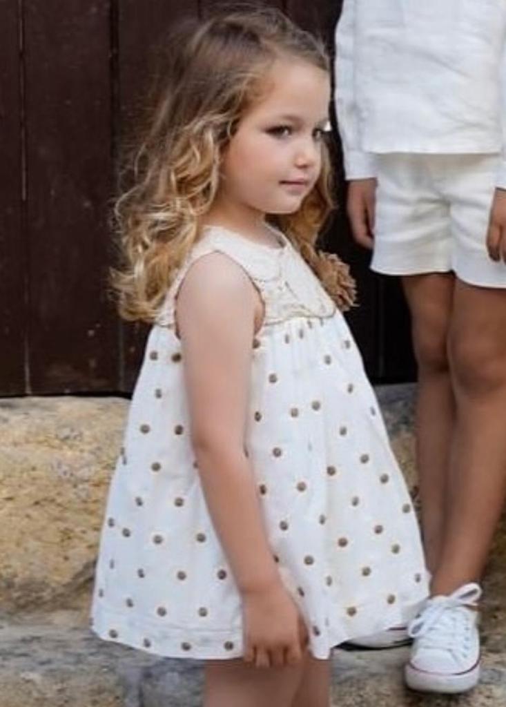 Espectacular jesusito perteneciente a la colección Marsella de la firma Noma Fernández, para la temporada primavera verano 2025. La braguita es a juego en el color crudo con los topitos de la parte baja del jesusito, es súper bonito y muy apropiado para cualquier celebración.
