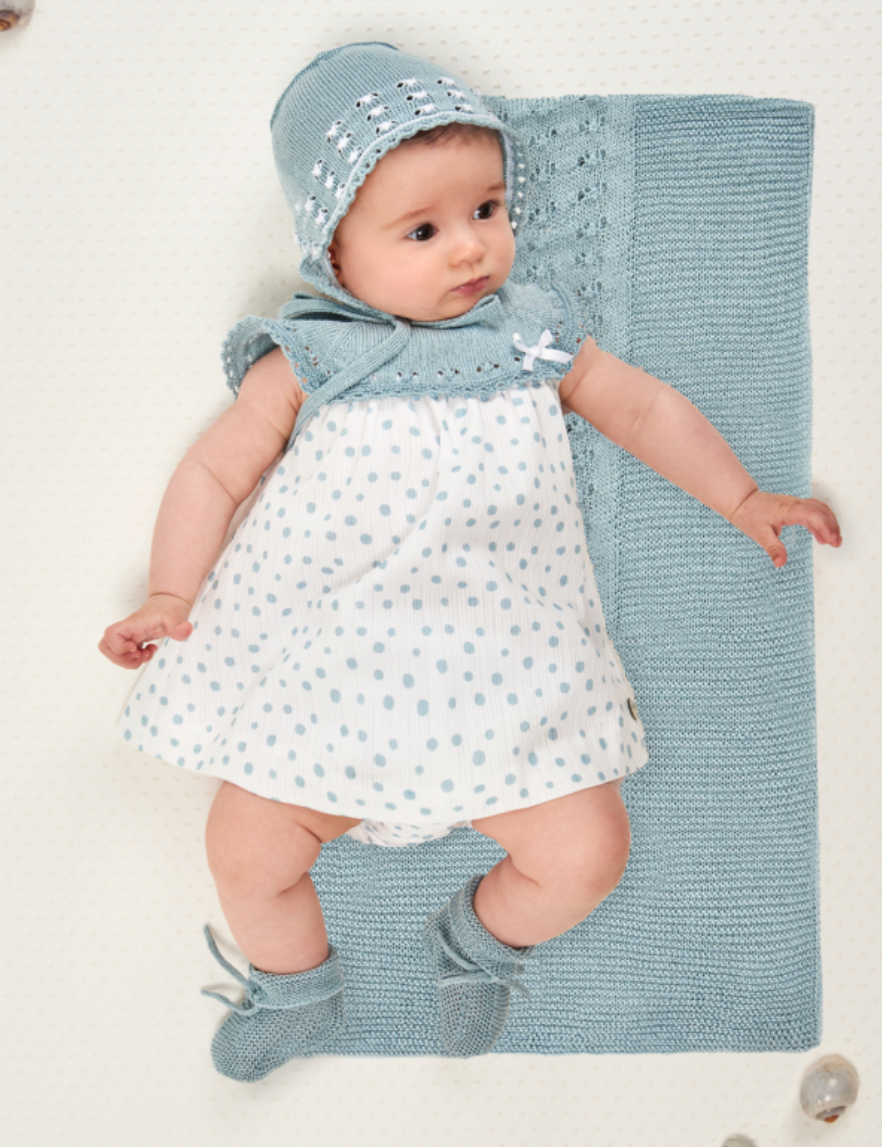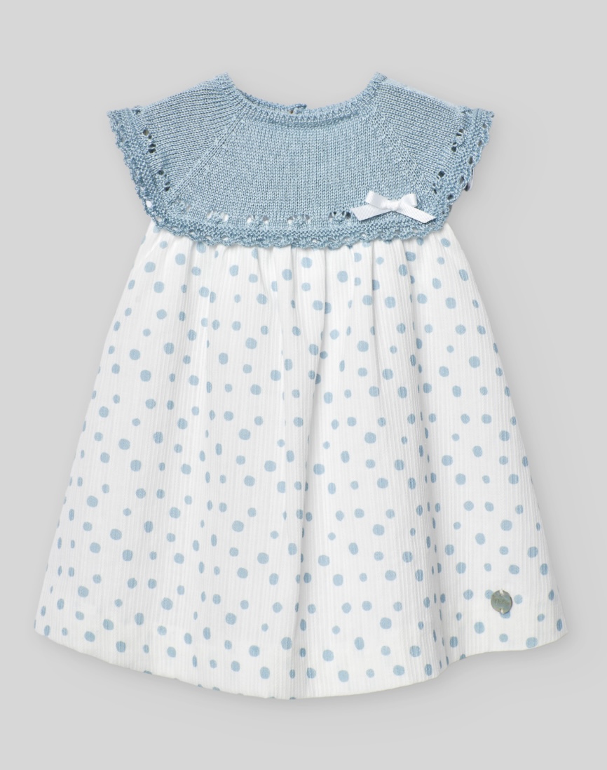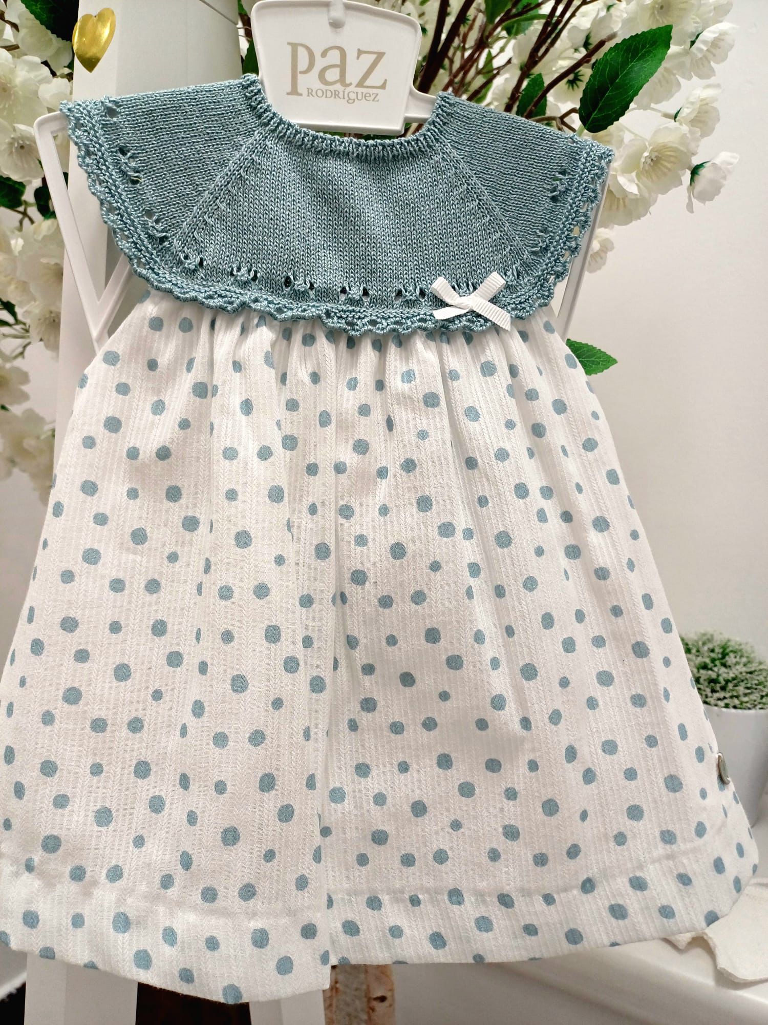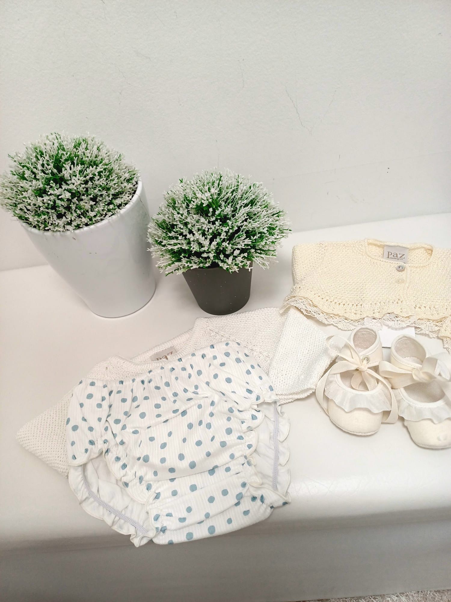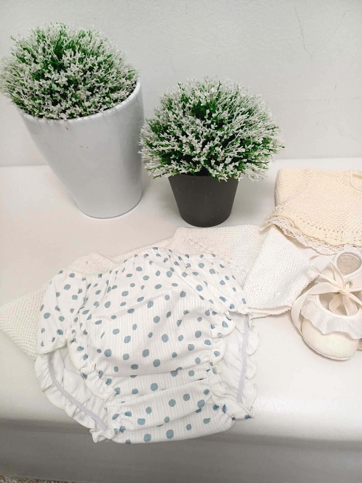 Vestido con su braguita a juego de la colección Serán de la firma Paz Rodríguez para la temporada primavera verano 2025, con punto trabajado en la parte superior en color ópalo. 100 por 100 algodón.